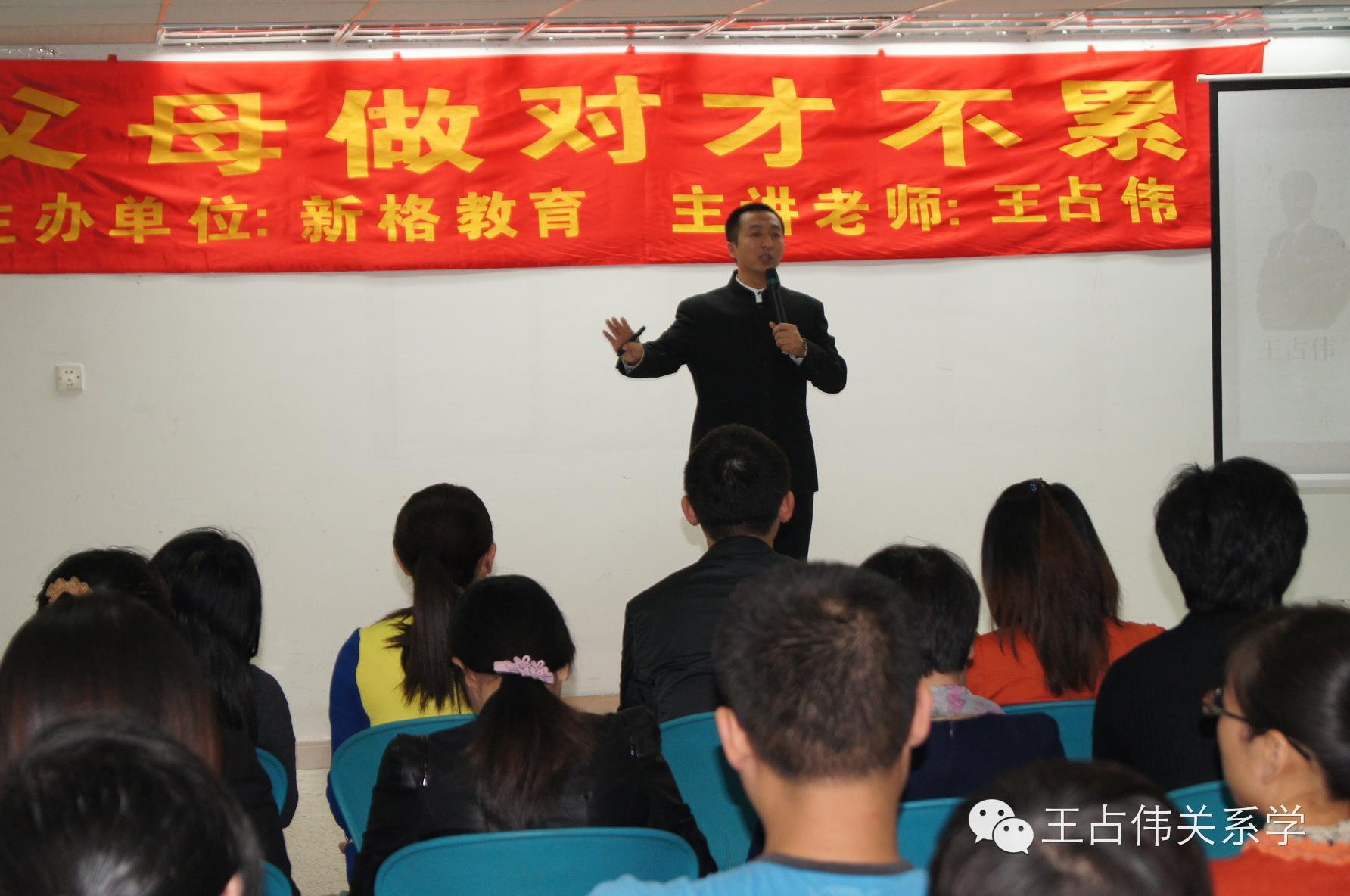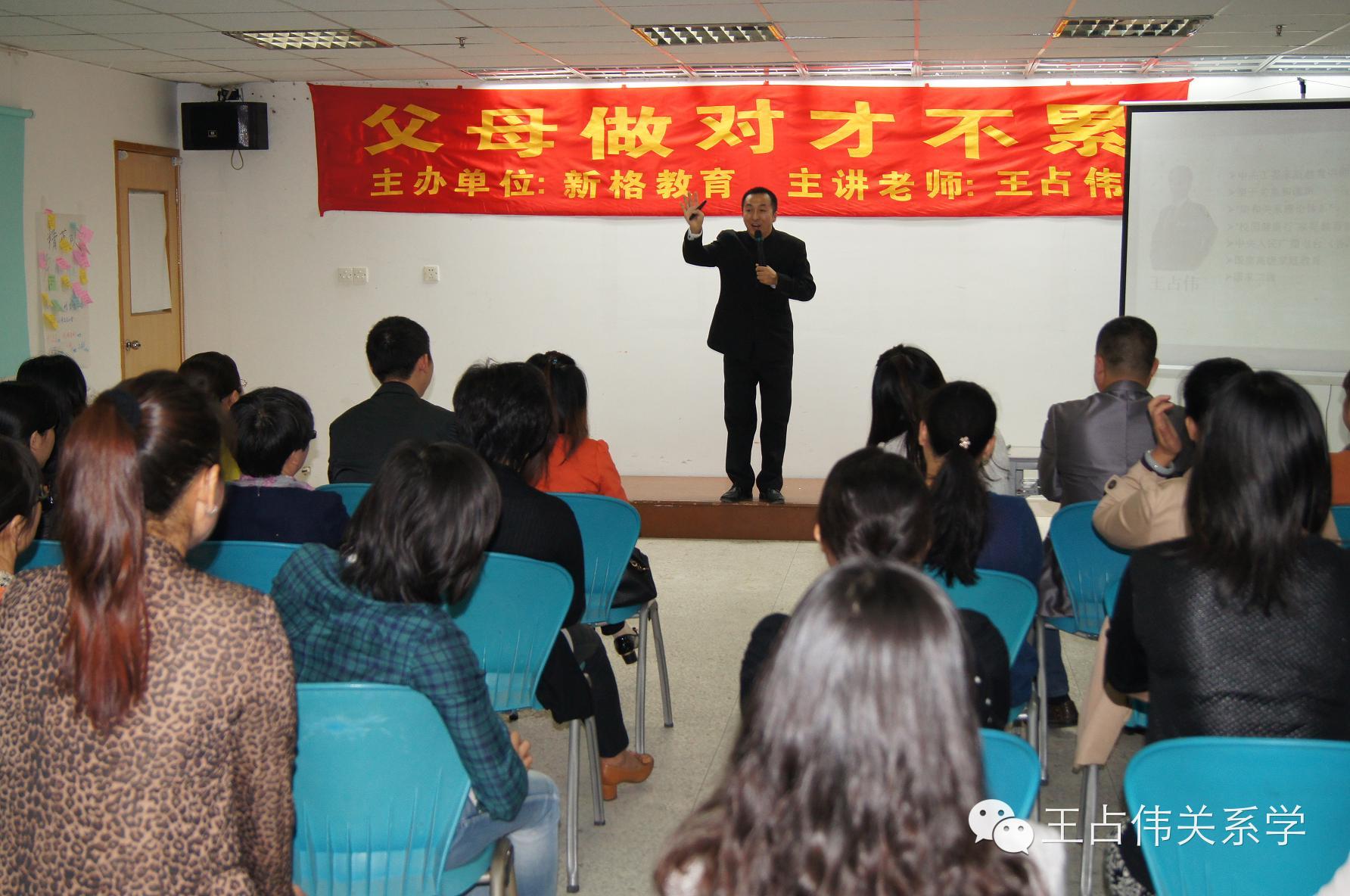 在中國,王占偉先生的足跡踏遍了23個省、自治區、直轄市。包括河北、河南、山東、山西、陜西、遼寧、吉林、黑龍江、江蘇、江西、浙江、安徽、福建、湖北、廣東、四川、貴州;內蒙古自治區、廣西壯族自治區;北京、上海、天津、重慶等。為眾多的家長、學生、教師、企業家做過幾千場演講和報告,為無數學員找到了家庭幸福的發展方向與目標。