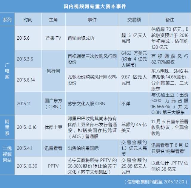 這里是我們對2015年視頻網站重大資本事件的不完全統計。
