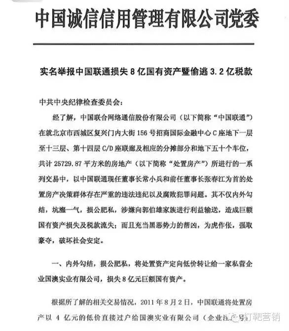 今年1月份,中國誠信信用管理有限公司(以下簡稱“舉報方”)曾實名舉報“現任董事長常小兵及前任董事長張春江為首的處置房產決策群體存在違規違紀及腐敗犯罪等問題”。
