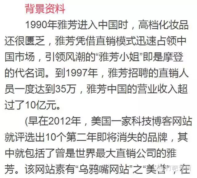 時年129歲的雅芳,進入中國25年后,由盛及衰,第一個在中國拿直銷牌照的老牌外國企業,可能就要在這個市場上銷聲匿跡了。