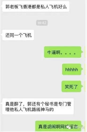 也有人稱,郭廣昌飛香港都是私人飛機,真是醉了,而且還透露郭還有專門管理他私人飛機路線的人。
