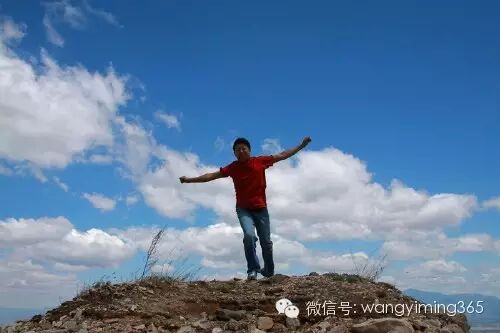 在一處已經坍塌成石堆的長城垛口處,大家紛紛合影,張開雙臂,在勁風之中展翅飛翔,相機仰面拍上去,人飛在云中。