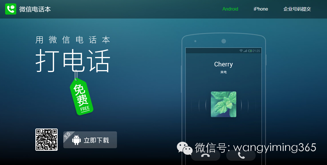 使用智能手機(jī)和微信的用戶,在下載微信電話本后,在WIFI狀態(tài)下即可實(shí)現(xiàn)免費(fèi)通話。當(dāng)然,前提是需要通話雙方都下載此APP。