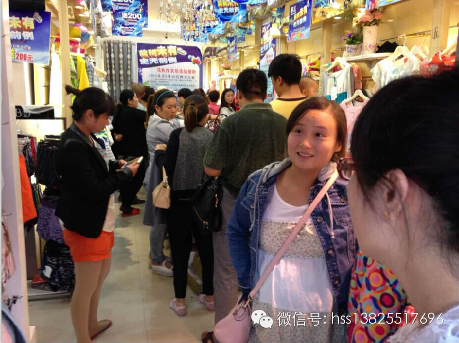 活動現場人潮涌動(合理安排活動現場當中的人員分配,分四個地方,一個是試衣間內,一個是收銀臺,一個是店內外場,一個是門店外場)
