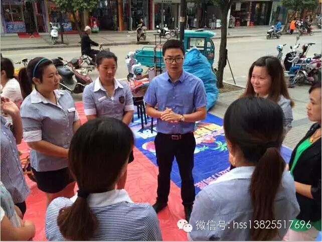 落地專員丁馬老師在進行活動中的總結會(事中的及時總結一定要有,讓員工有更好的狀態、更好的方法去做)