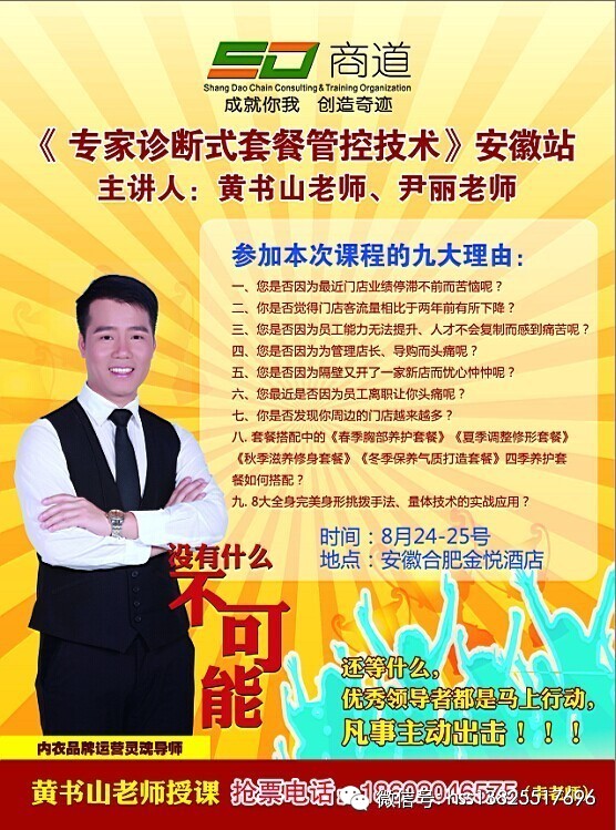 商道大講堂8月24-25日安徽站——《商道專家診斷式套餐管控技術》,期待著你的加入,你準備好了嗎?