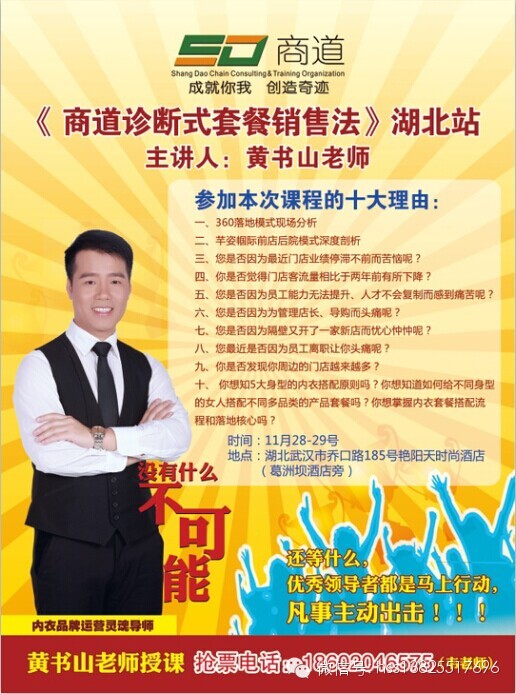 商道大講堂11月28、29號湖北站——《商道診斷式套餐銷售法》,期待著你的加入,你準備好了嗎?
