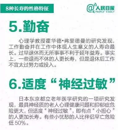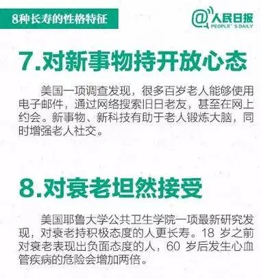 據(jù)醫(yī)學(xué)雜志《柳葉刀》:一個人能活多久,30%取決于基因,70%取決于個人選擇。良好的習(xí)慣和性格,讓人更加健康!①好習(xí)慣:減肥、多吃魚少吃糖、戒煙、停喝碳酸飲料……②好性格:認(rèn)真、樂觀、勤奮、樂于助人……做到這些↓↓能換來幾十年的壽命。