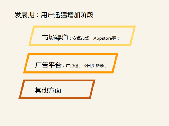 整體產品線的延伸,在種子期定位完成后,發展期要做的是通過所有渠道、各種各樣手段來最大程度獲取目標用戶,這個過程中,主要是用戶基數的積累。