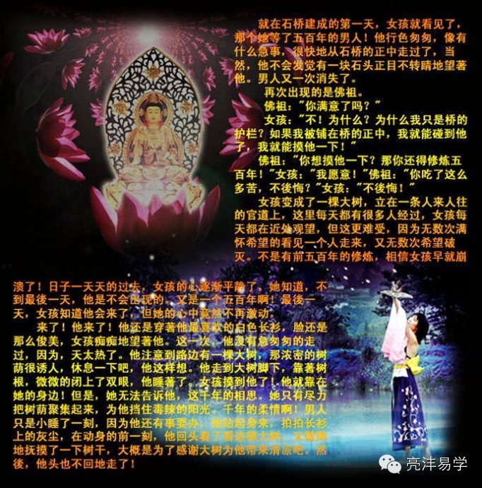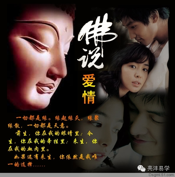 佛說愛情:一切都是緣。緣起緣滅,緣聚緣散,一切都是天意。前生,你在我眼睛里;今生,你在我的牽掛里;來生,你在我的血肉里。如果還有來生,你依然是我唯一的選擇... ...