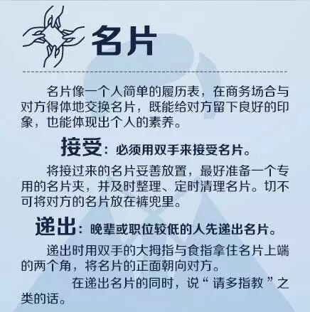 交換名片時,晚輩或職位較低的人先遞名片;與人問候,不要觸及他人隱私;入座時,應從椅子左側入座……小細節,大印象,這些職場禮儀常識你都知道嗎?