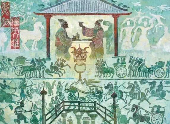 一場惡戰在即。劉邦從項羽的叔父項伯口中得知此事后,驚訝無比,劉邦兩手恭恭敬敬地給項伯捧上一杯酒,祝項伯身體健康長壽,并約為親家,劉邦的感情拉攏,說服了項伯,項伯答應為之在項羽面前說情,并讓劉邦次日前來謝項羽。