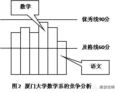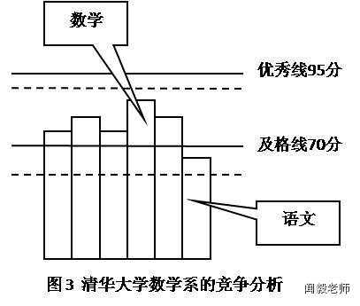 對這位考生來講,考廈門大學還是清華大學是不同層次的競爭。競爭升級了,總分的要求也就相應的提高,他需要提高整體的實力水平。不過不變的是,強項數學仍是“瓶頸”,還得加強,弱項語文構成了新的“瓶頸”,需要彌補。將語文補到數學的水平,對他來講,并不是現實的選擇,也不是合理的選擇。因為他的學習時間和精力是有限的,另外,他的目標也不是考中文系。
