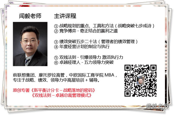 聞毅老師為前聯想、MOTO高管,中歐MBA,提供戰略、績效、領導力三方面中高層培訓+輔導,微信號“kennethwenyi”。