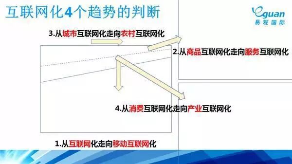 第一趨勢,從互聯網化到移動互聯網化,以及今后的車聯網、物聯網,這是最明顯的一個趨勢。