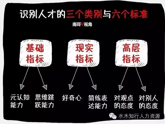 那么我會通過什么來辨別聰明人呢?我有六個標準,兩兩一組分為基礎指標,現實指標,和高層指標三個類別。基礎、現實、高層的分類不是想說明輕重和高低,只是為了方便大家理解。南哥覺得這六點比建立所謂的能力模型高效多了,似乎所有的牛人都具備以下六個特點。