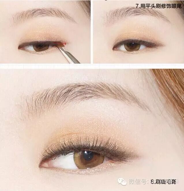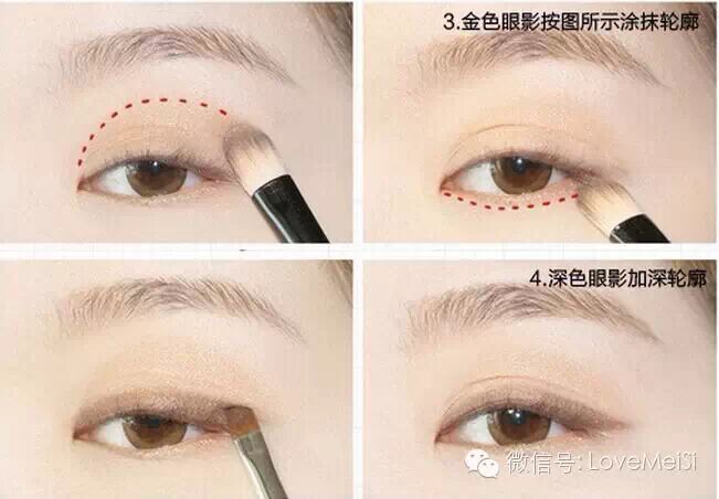 淡橙的眼影,淡橙色的腮紅,淡橙色的唇彩或唇膏。