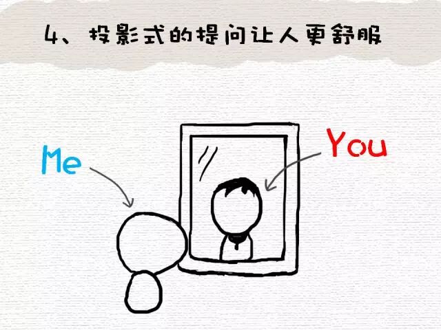 對于尷尬的問題長驅直入的方式會讓對方難以開口回答,這時投射式的提問往往更容易讓對方敞開心扉。關鍵的技巧是將“你”用“其他者”代替。舉個例子說,小明是畢業生,剛進入公司1個月,你想了解他在工作上的困難,“小明,你對覺得一般剛進入職場的人會遇到什么困難?能列三點嗎?”