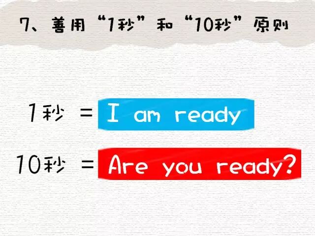 1秒原則是當你聽完別人講話,給予1秒的停頓,表示你剛才有在聽他講話,可以附帶點頭的肢體動作;10秒原則是當你提出一個對方很難即時做出回答的問題時,要給予大概10秒的時間對方,例如:你有沒有想過這樣做的后果?